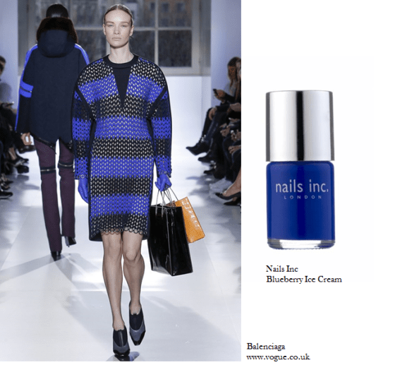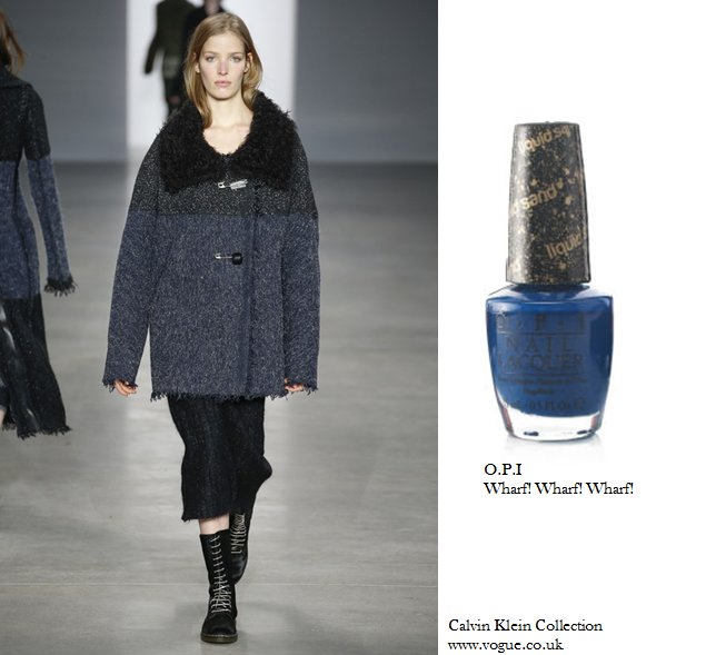 As much as it pains me to say September is rearing its ugly head, back to school items are littering the high streets and Autumn/Winter is well and truly on the shop floors, with the bikinis looming in the distance covered in red pen. Time to think about what this Autumn has to offer, what we have to look forward to and of course what styles to take on. We can start small for now and venture into the Autumn nail trends, if we can take inspiration from the Autumn/Winter 14 Ready to Wear shows and focus on Calvin Klein Collection, Alexander McQueen and Balenciaga, then it has to be deep dark blues, bright blues and bedazzling blues.