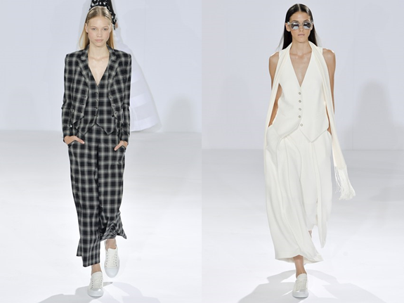 Free and feminine the best possible way to describe Richard Nicoll’s show, if ever you could imagine a great Summer wardrobe (of dreams) which would take you from day to night it’s this. The layering was soft and flowed effortlessly combined with Summer greys, perfect lilacs and splashing of metallic and deep deep blue. Stand out outfit for me was the light sleeveless trench with a matching a metallic cami and metallic sliders, simply combination but executed so well.