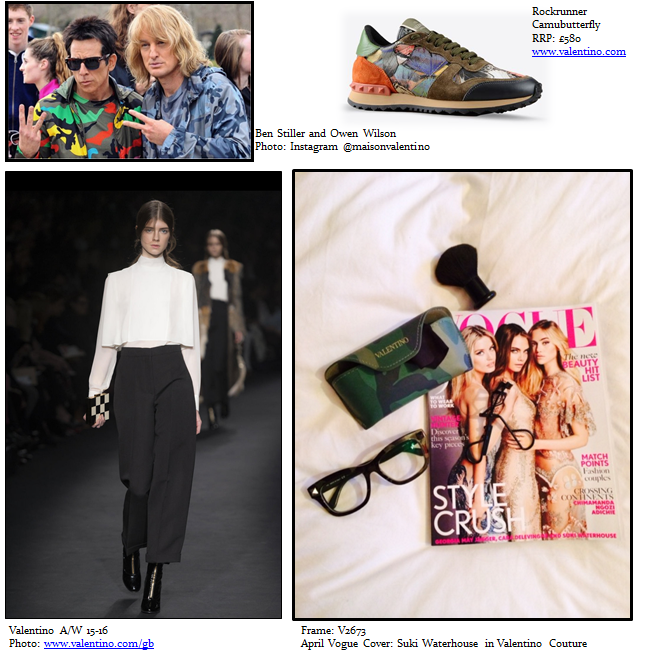 The brand is a perfect example of what fashion is best for, expression, designs you can only dream of, re-invention, I may not have a Haute Couture gown or a pair of Rock Stud heels but my Valentino sunglasses and my Camou glasses are my little piece of Valentino and hopefully just the start of my collection.